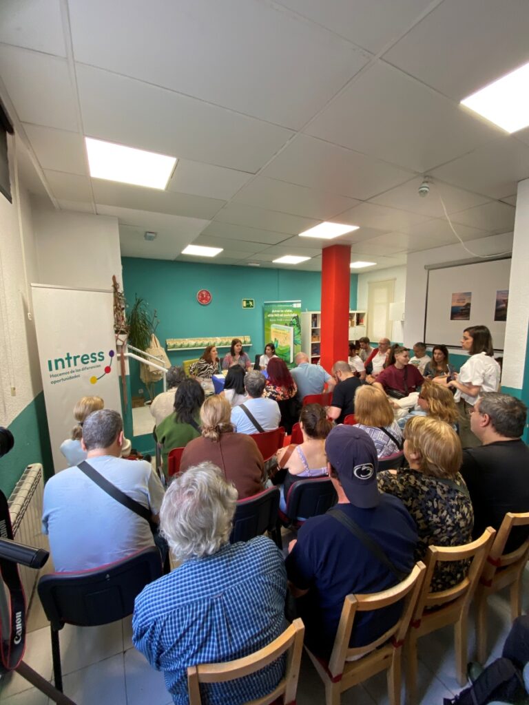 Va ser una trobada càlida que va reunir persones en atenció del mateix recurs, amics i amigues de l’Ilona, l’equip de suport social comunitari de Moncloa-Aravaca que també intervenen amb Ilona, l’equip de suport social comunitari de Navalcarnero d’Intress, i Ricardo en representació del recurs INSERTA Empleo de la Fundación Once, que també està situat en el barri d’Arganzuela.